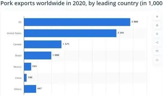 (圖:2020年全球主要豬肉出口國(guó)出口量預(yù)測(cè))