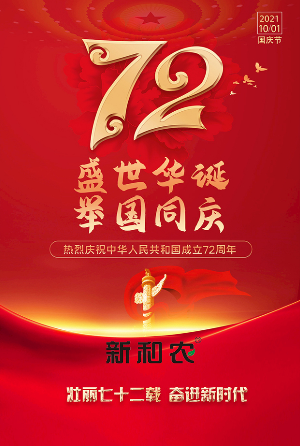 祖國(guó)是我們中華兒女的驕傲,尤其在國(guó)際局勢(shì)動(dòng)蕩、新冠疫情肆虐的今天,我們更為祖國(guó)倍感自豪。國(guó)家強(qiáng)則民強(qiáng),國(guó)家富則民富。在慶祝中華人民共和國(guó)成立72華誕的特殊時(shí)刻,全體新和農(nóng)人用牢記使命獻(xiàn)禮祖國(guó),追求員工幸福感,追求客戶獲得感、追求社會(huì)責(zé)任感。我們將立足畜牧業(yè),發(fā)展好畜牧業(yè),為國(guó)家興旺發(fā)達(dá),為國(guó)民身體素質(zhì)、智力提高不懈努力,實(shí)現(xiàn)夢(mèng)想共同富裕。
