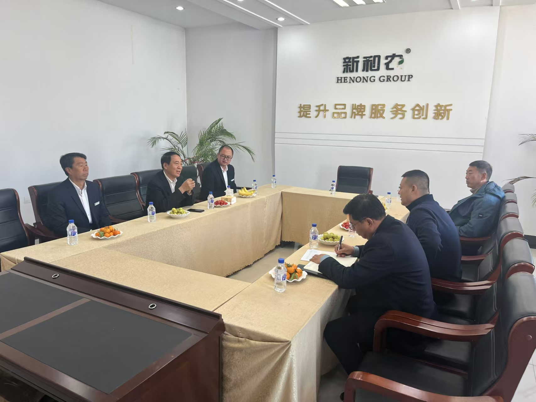 農(nóng)安農(nóng)商銀行行長王福堂,副行長劉仁,合隆行分行行長彭彬等一行5人到訪和農(nóng)牧業(yè)集團蒞臨,和農(nóng)牧業(yè)集團董事長方彥明先生熱情接待,雙方就加強業(yè)務合作進行座談交流。